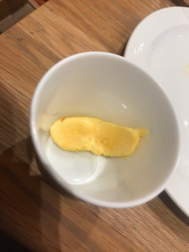 最後パンの耳の下に、切り落としたオムレツが一切れ入っててクスってなりました。